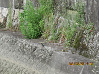 8月8日15時頃に自転車で通りかかった時,カワセミのフンの跡を探そうと川を覗き込むと,カワセミが飛び立ちました。