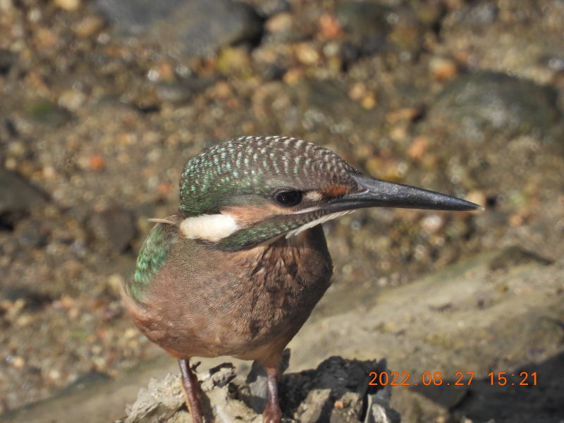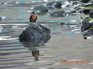 くちばしの下全体が赤いので,上流側にいるカワセミだと思います。さきほどの下流側のカワセミとは違うのではないかと思います。