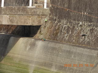 そこで,前回見た下流側を見ると,カワセミがダイブしました。肉眼では分かりません。今までも気づかなかったのかもしれません。