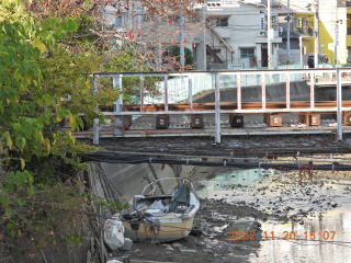 また元の場所にもどりましたが,電車が通ったので橋の下流側に移動しました。