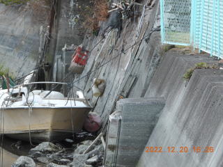 16時過ぎに来ました。上流にはいませんでした。下流の橋から下流側を見るとカワセミが12月8日に見た場所付近にいました。遠いのにすぐにどこかへ行きました。