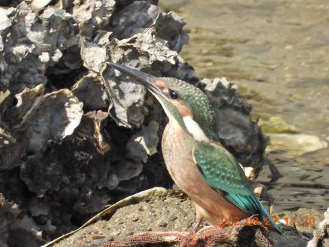 少し移動しました。このカワセミはオスかと思っていましたが,くちばしの下が少し赤いのでメスですね。この後,カワセミがキセキレイを追いかけていました。カワセミもこんなことをするのを初めて見ました。