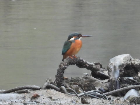 1周しましたが.カワセミはいませんでした。もう一度回っていると,歩いている側の川どてにカワセミがいるのに気づきました。すぐに対岸の遠いところに飛んでいきました。