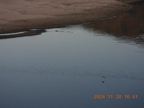 16時40分頃来ました。しばらく川を見ていると,セキレイが2羽くらい飛んでいました。またセキレイかと思っていると,上に上がってホバーリングをしました。