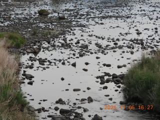16時20分過ぎに来ました。橋から下流側を見ていました。以前よくとまっていた三角形の石の上にカワセミらしきものがとまっていました。