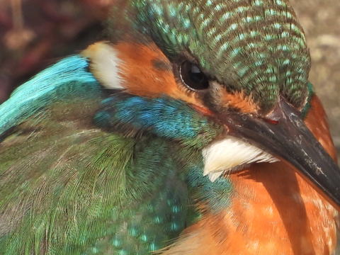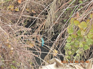 14時前に前回と同じところをのぞくとカルガモがいました。するとカワセミが下流に飛び立ちました。とまったと思った所にカメラを用意して行きましたが,カワセミはいませんでした。2~3回往復しましたが,見つけられませんでした。