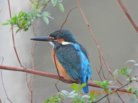 いつもの場所から最近よく見る下流側に行くとカワセミがとまっていました。カメラの準備が間に合わず暗くなってしまいました。