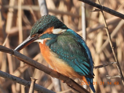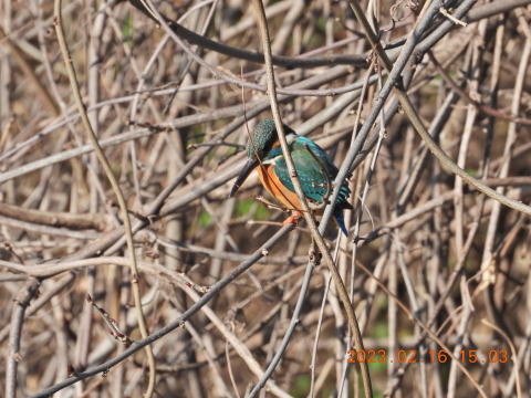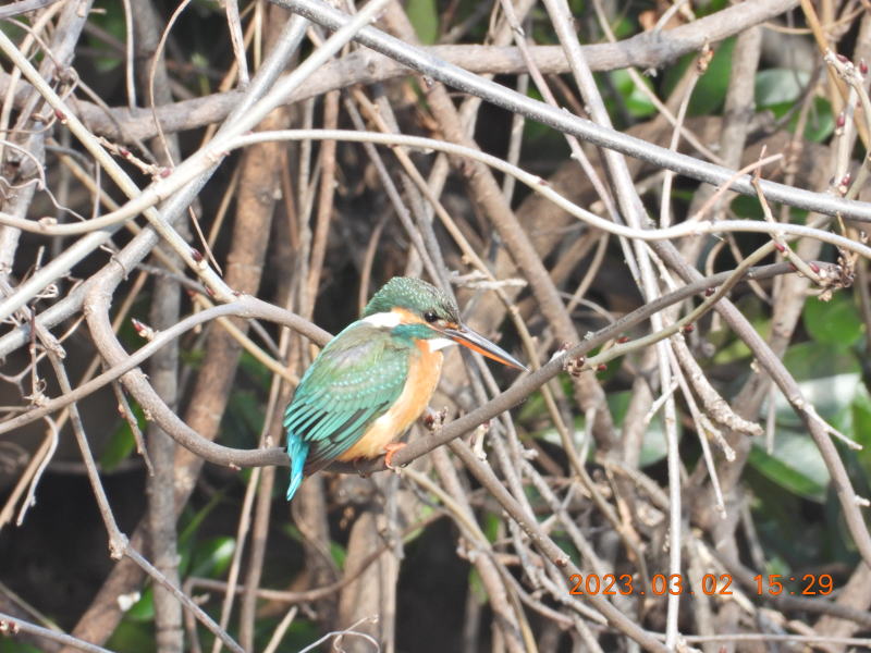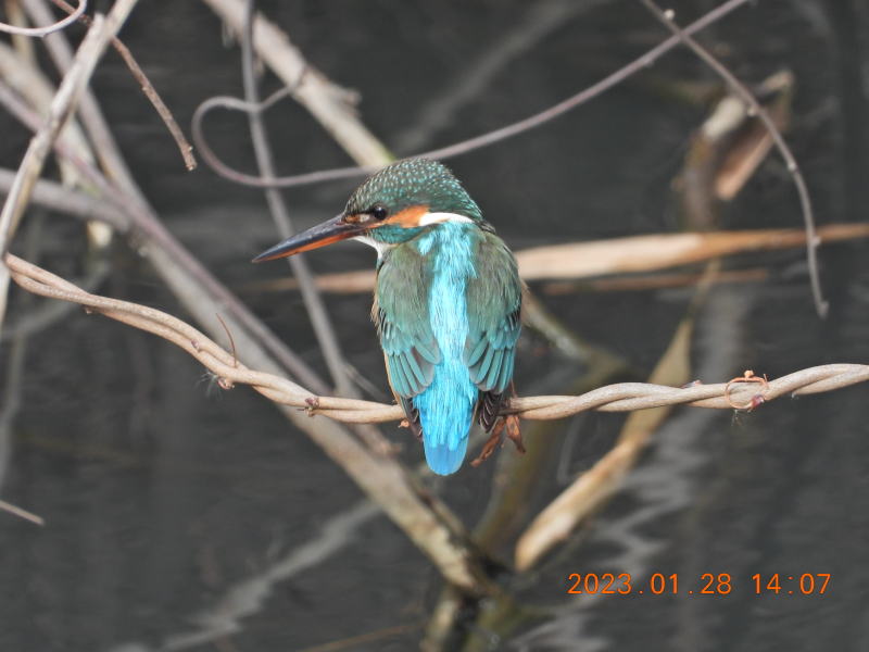 14時前に来ました。すぐにカワセミの鳴き声が聞こえました。声の方を見ましたがなかなか姿をとらえることができませんでした。何とかカワセミの姿が見えました。