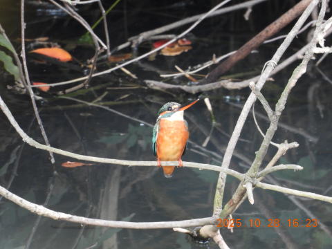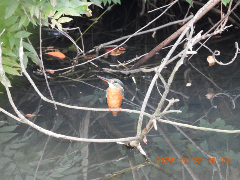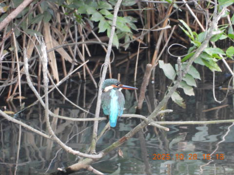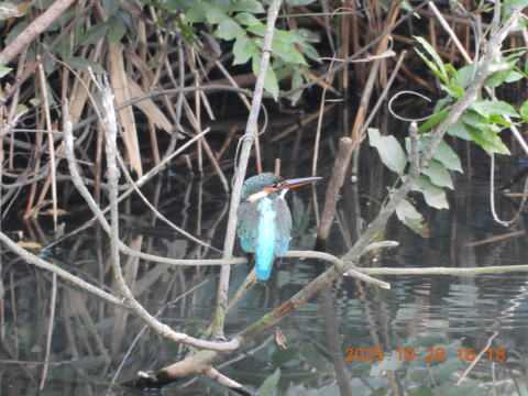 16時15分過ぎに来ました。いつもの場所を見ると,何か青いものが見えました。カメラで見るとカワセミでした。