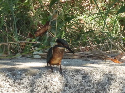 12時50分頃に来ました。水路の途中まで行くと,カワセミが右の方へ飛んでいきました。飛んでいった方へ行ってみましたが,カワセミは見ませんでした。