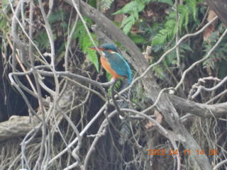 池についてしばらくすると,カワセミの鳴き声が聞こえました。10分間くらい姿は見えませんでした。そのうち池を2~3回飛び回りました。遠くの方にとまるのが見えました。