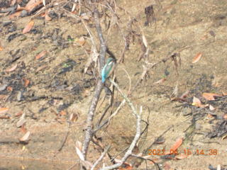 カワセミがいないような気がしたので,帰ろうかと思い,帰る前にもう一度池を見ると,カワセミが奥の木の枝に飛んで行くのが見えました。