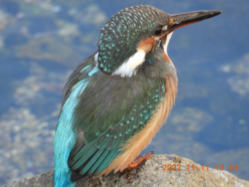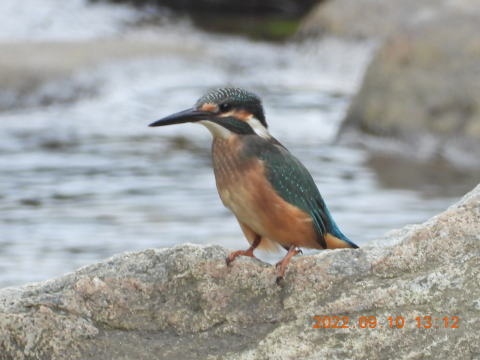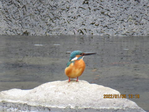 13時30分に来ました。中流のいつもの場所より少し先の川の中の石の上にカワセミがいました。