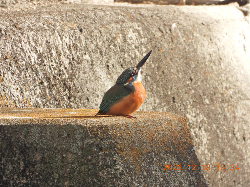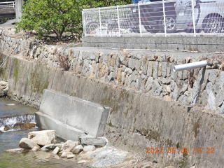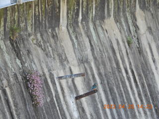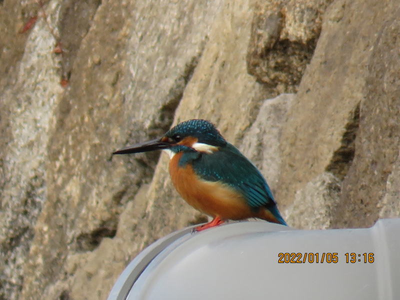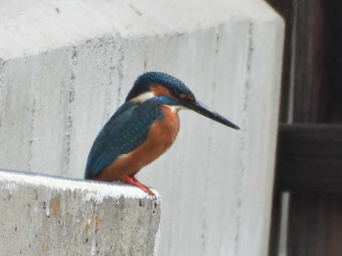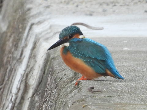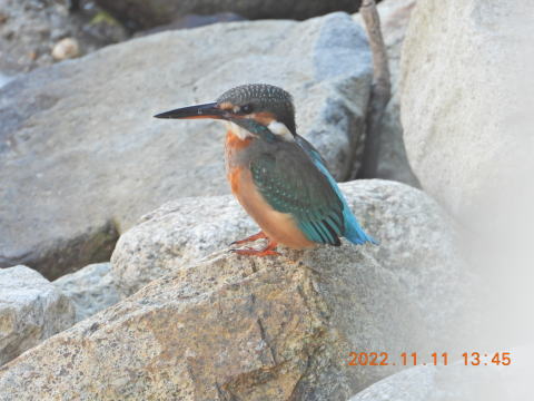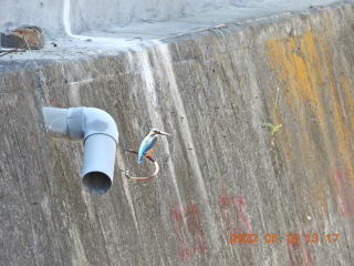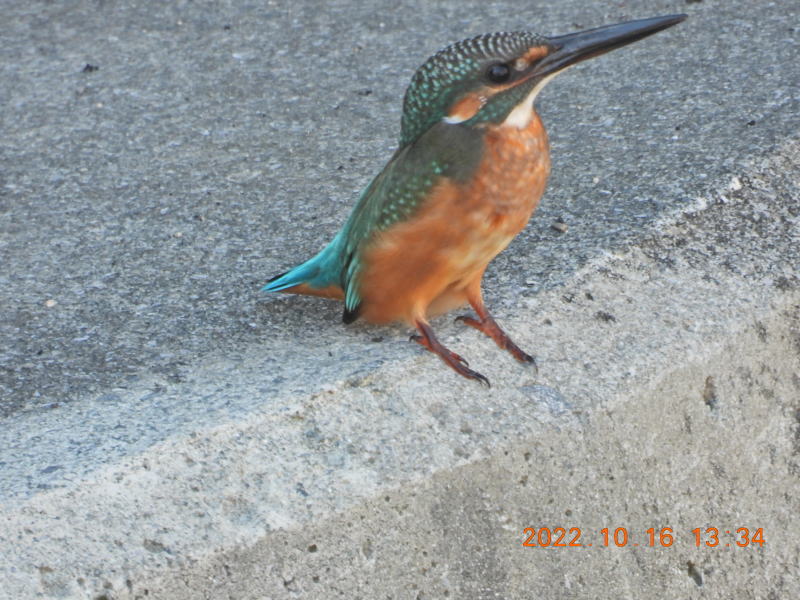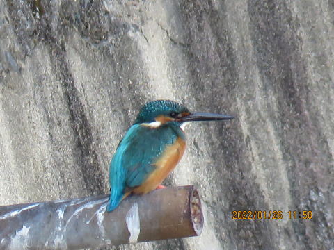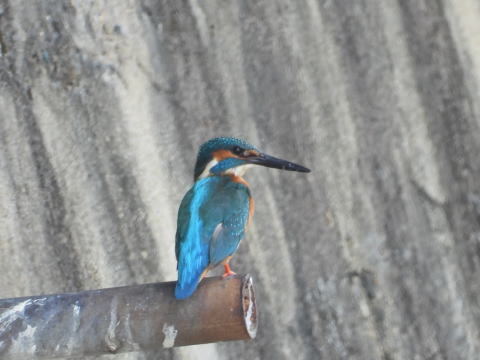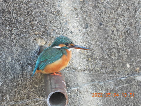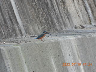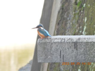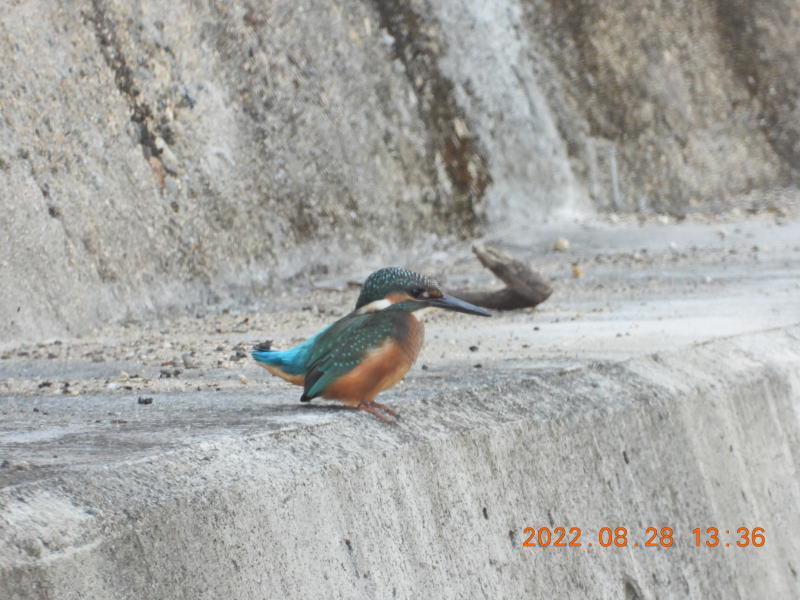 上流まで行って帰る途中,中流から下流に行く途中の橋の下で何かが動きました。のぞいてみるとカワセミでした。かくれながらカメラを取り出して写しました。