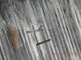 写真を撮ると,なぜかこちらに飛んできて真下を通って止まりかけましたが,下流側に飛んでいきました。左上の写真の左上に写っていました。
