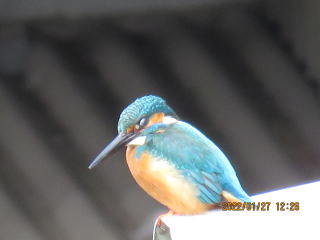 カワセミは場所を色々変えていましたが,屋根の上にとまってじっとしていました。残念ながらもどる時間になったので,この場を去りました。