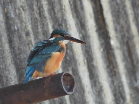上流に向かっていると,川から水を引く道具に青いものが見えました。あんな所にとまっているのは見たことがなかったので,違うだろうと思って念のために見るとカワセミでした。