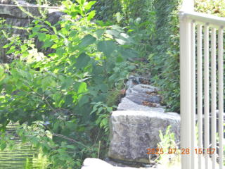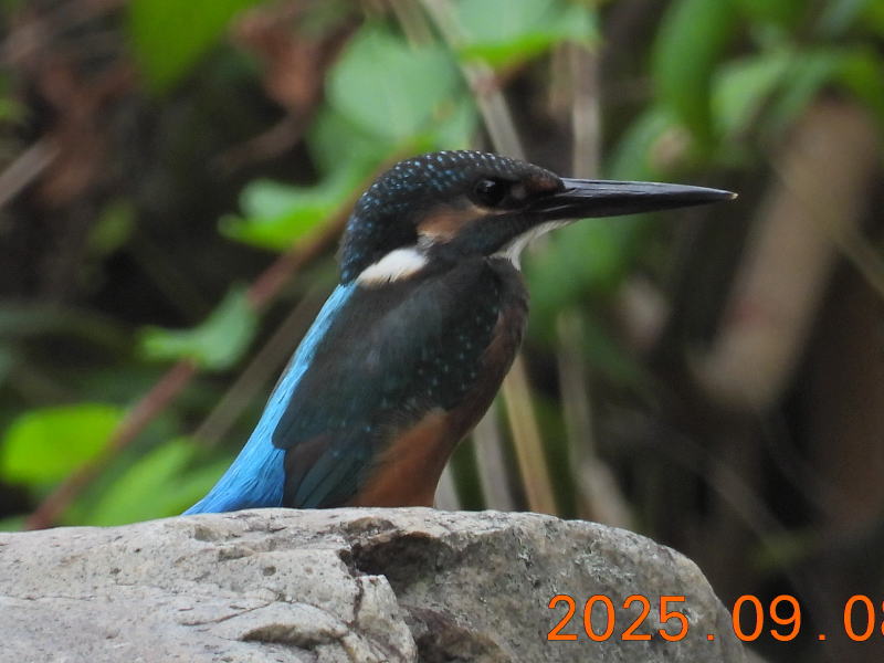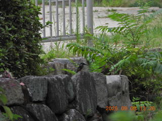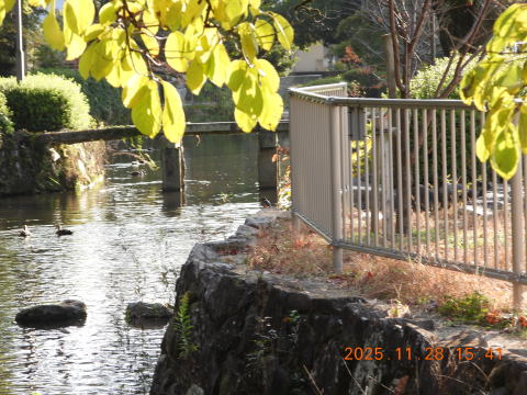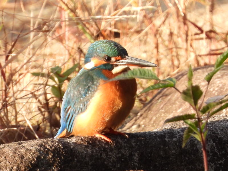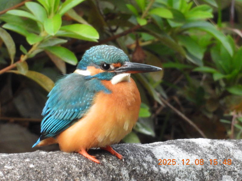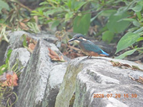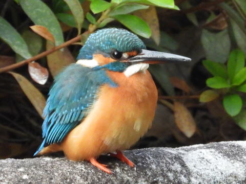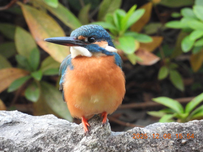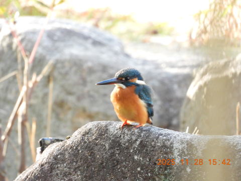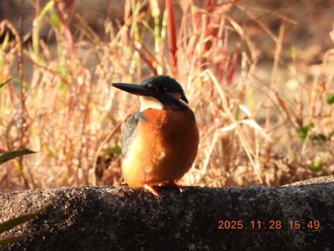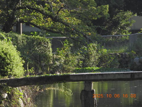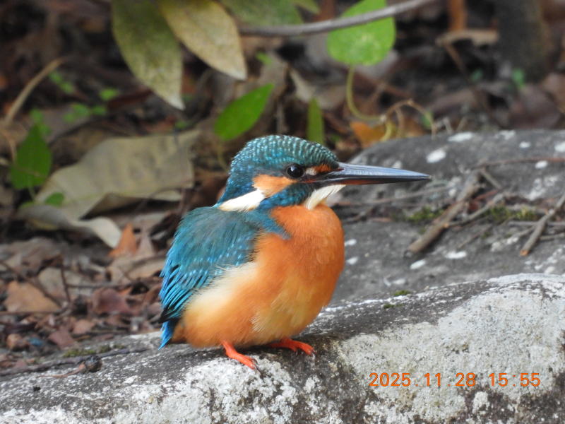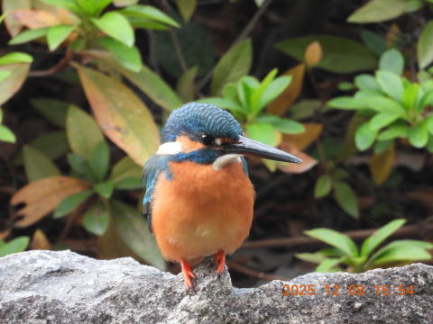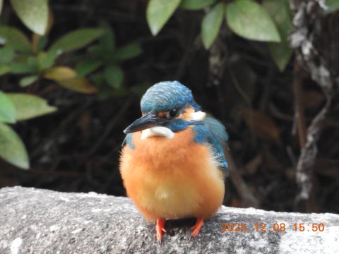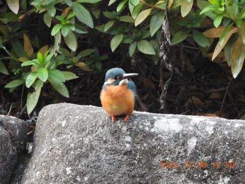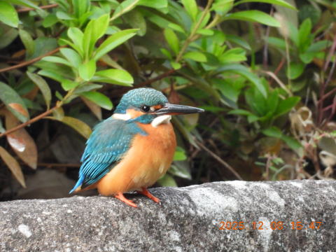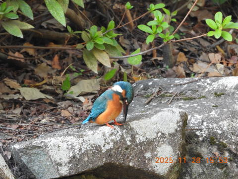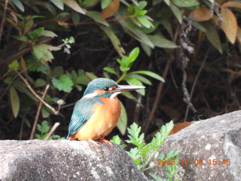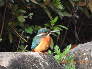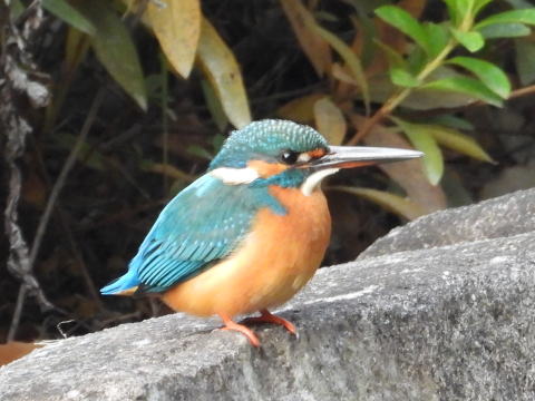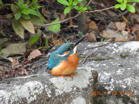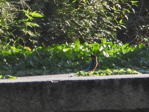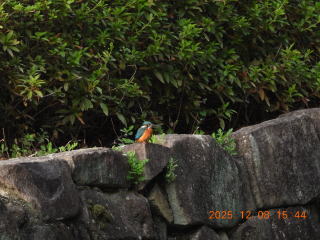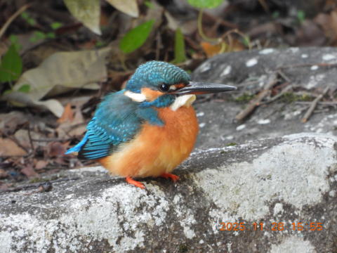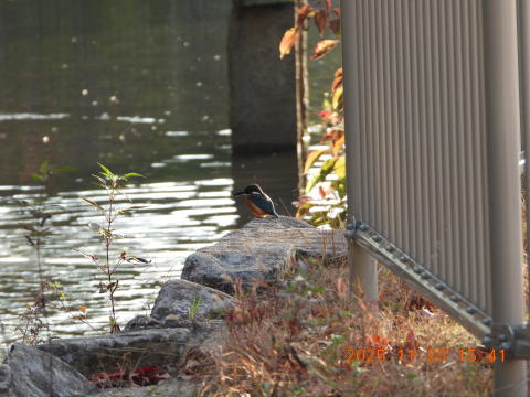 16時過ぎに来ました。公園の池を歩いていると,チチチッとカワセミの鳴き声がして,石橋の上に現れました。そして,すぐに奥の方へ飛んでいきました。