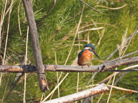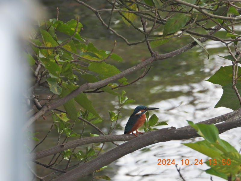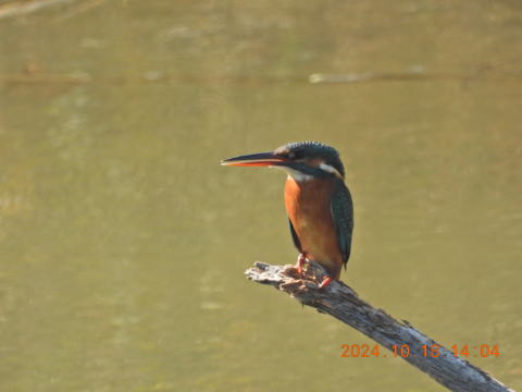 15時20分頃再度来ました。西端へ歩いていると木の枝に何かがいるように見ました。カワセミでした。