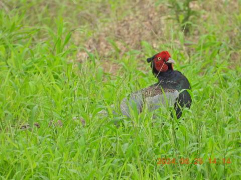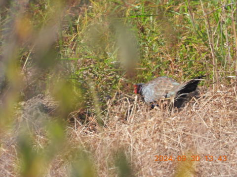 キジの鳴き声がしたのでその方向を見ると,遠くにキジがいました。