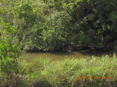 13時40分頃再度来ました。水路の真ん中より西側でカワセミが動きました。