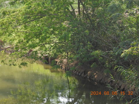 13時少し前に来ました。水路の東端に立つとカワセミが対岸の木の中へ飛んでいきました。飛んでいった辺りを見ましたがカワセミは見つけられませんでした。