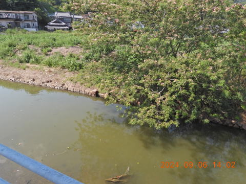 14時過ぎに来ました。水路の東端に来るとカワセミが写真の中央の木から飛んでいきました。