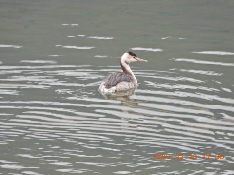 最近この鳥をよく見ます。カンムリカイツブリです。