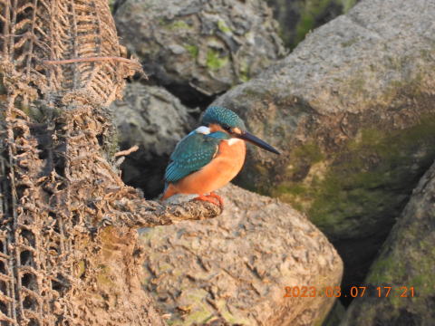 17時過ぎに来ました。川の水位が少し高いときによくいる場所にカワセミがいました。