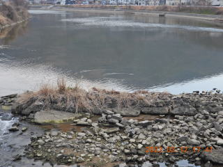 17時過ぎに来ました。カワセミの鳴き声も聞こえず,姿は見ませんでした。上流側と下流側のカワセミがいた場所を見てみると,上流側の前回見た場所にメスのカワセミがいました。