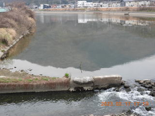 17時10分過ぎに来ました。橋の真ん中あたりでカワセミが下流側に飛んでいきました。