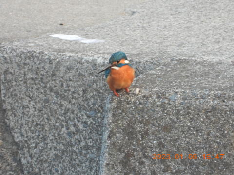 帰ろうと橋を古新開側に行くと,カワセミがいました。やはりダイブして水浴びをしていました。