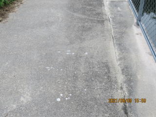 右の写真は分かりにくいですが右下のコンクリートにカワセミのフンの跡があります。