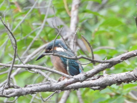 今日も通りかかったので,とりあえず車を停めて窓を開けて池を見ました。すると,奥の方の木からカワセミが左に飛んで行く姿が見えました。