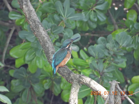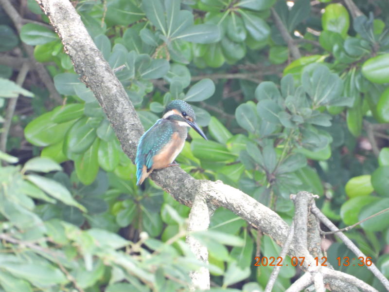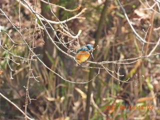 池を見ながら歩くと,枝から枝へ移る鳥が見えました。カワセミでした。