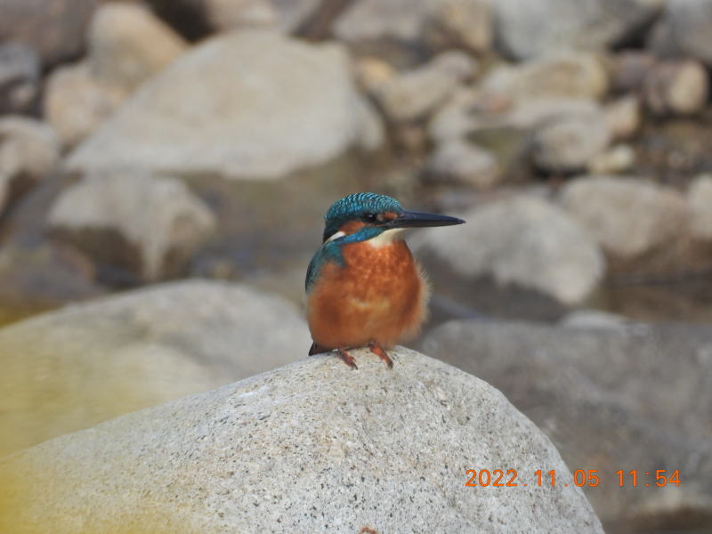 14時頃来ました。以前いた石の上にカワセミがいるのが見えました。
